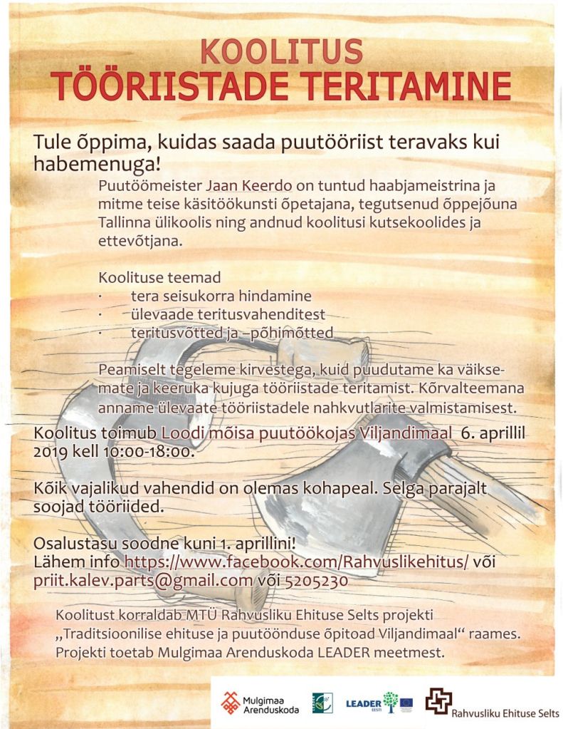 April 1, 2019December 23, 2019 Koolitus : tööriistade teritamine Share this: Share on X (Opens in new window) X Share on Facebook (Opens in new window) Facebook Like Loading... Related